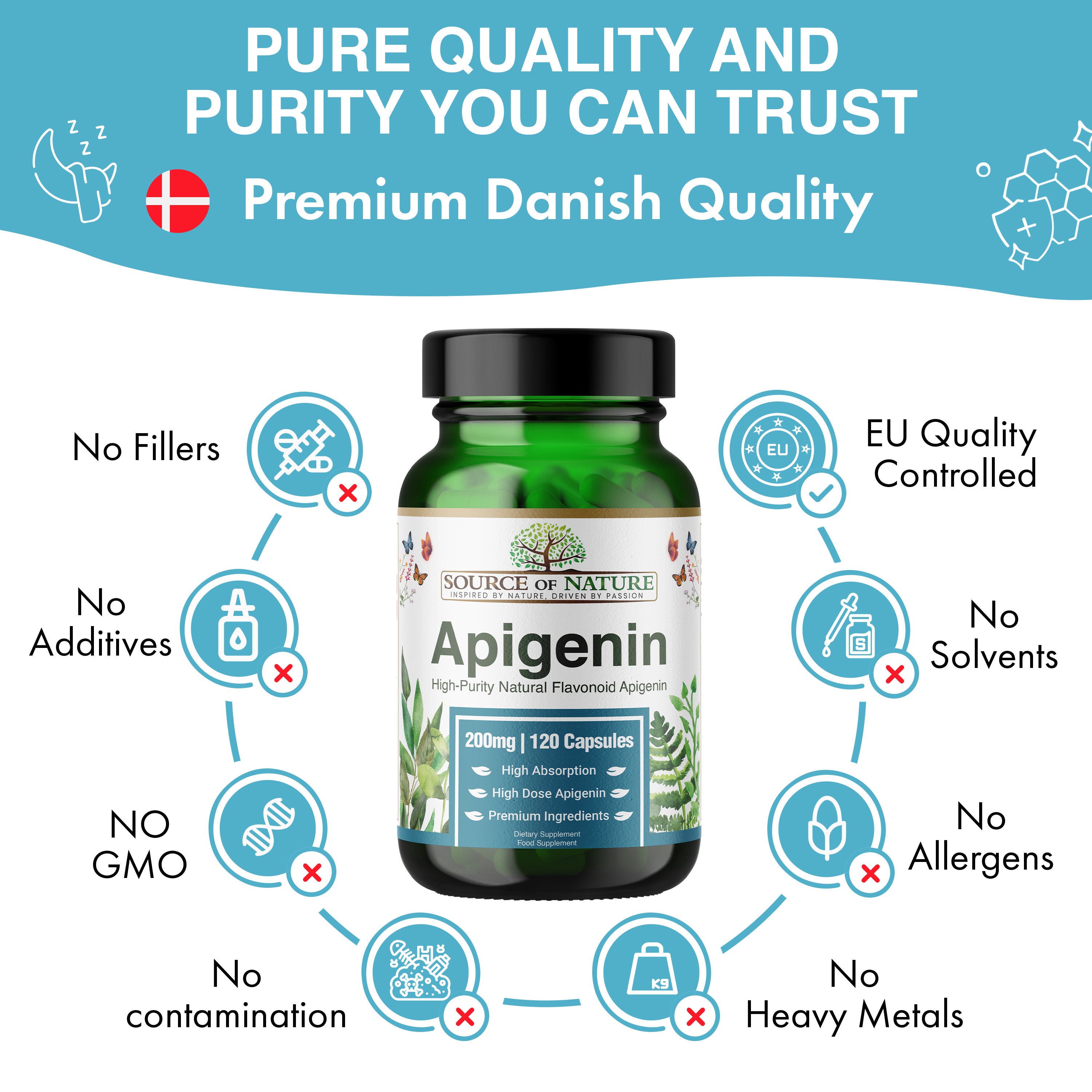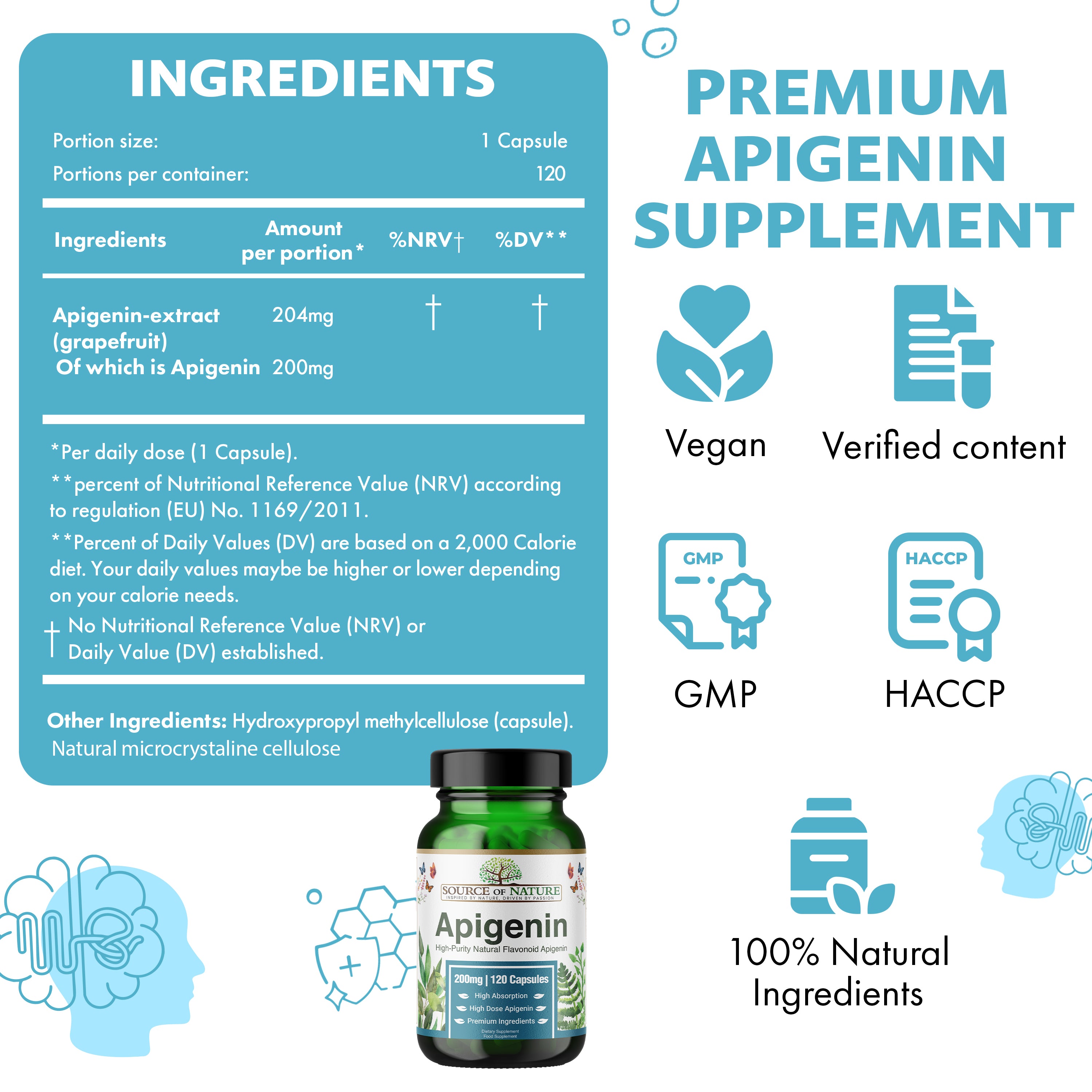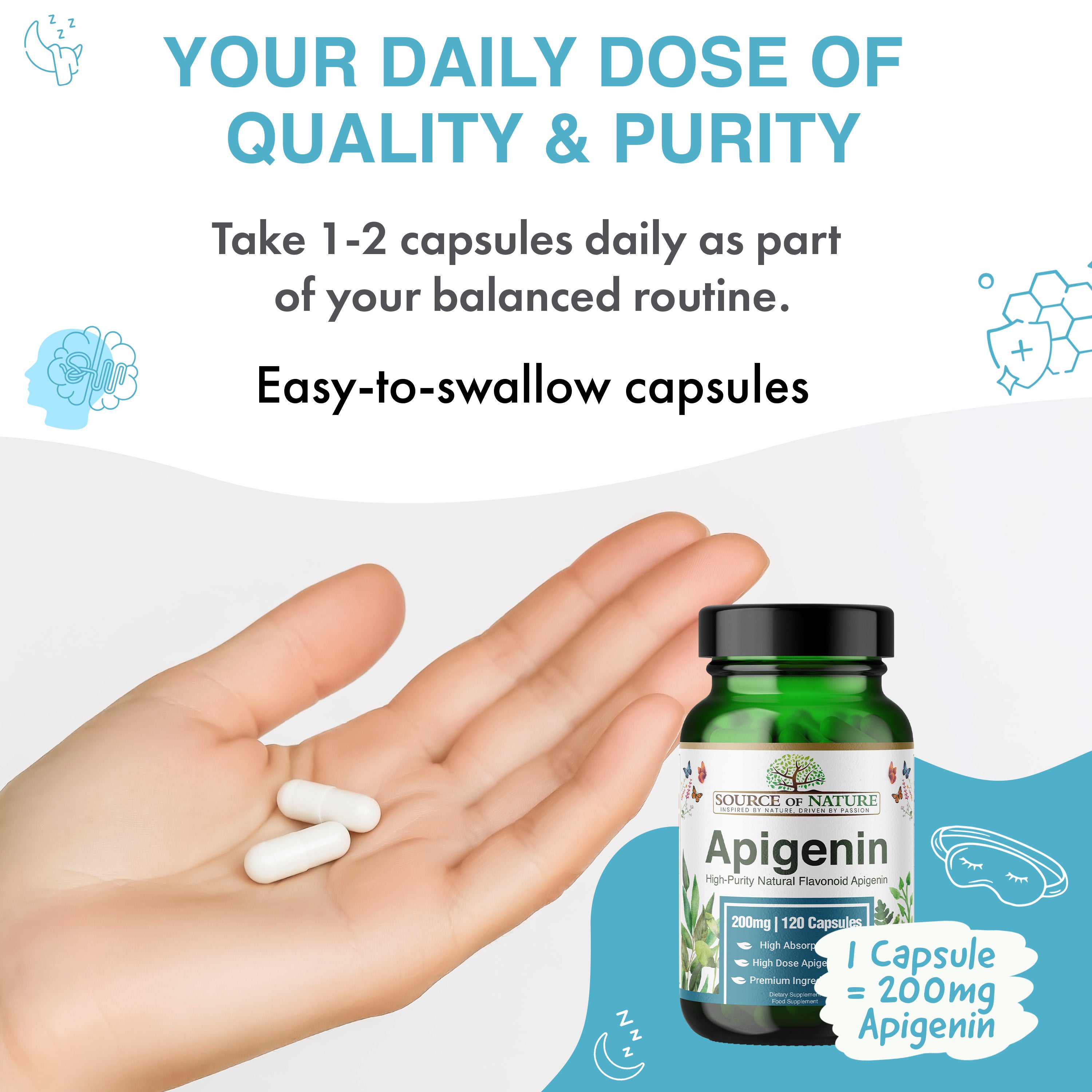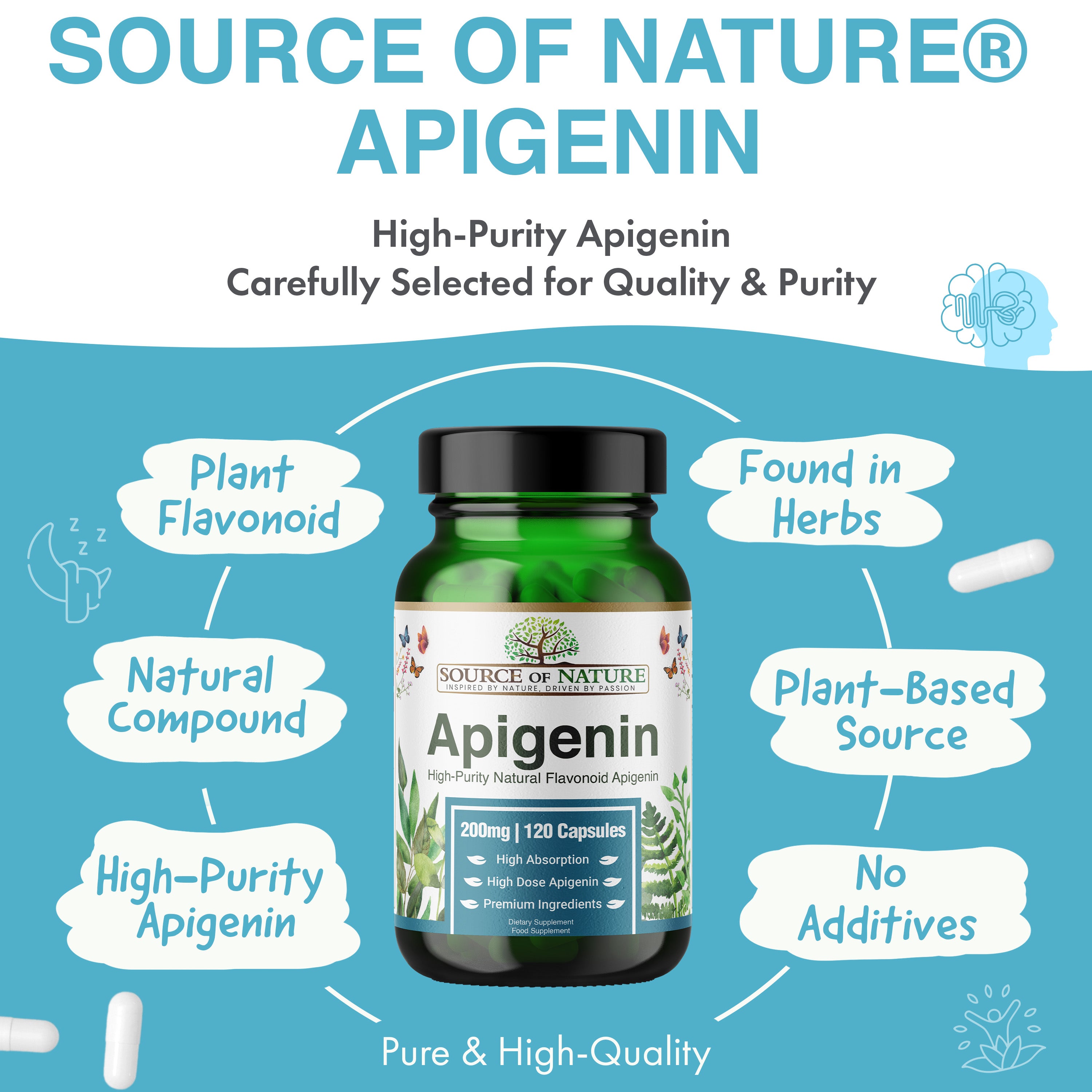 With its clean-label formulation, Source of Nature Apigenin is free from unnecessary additives and produced under strict quality standards. This premium Apigenin supplement is a convenient choice for those looking to complement their daily routine with a high-quality, plant-based compound.