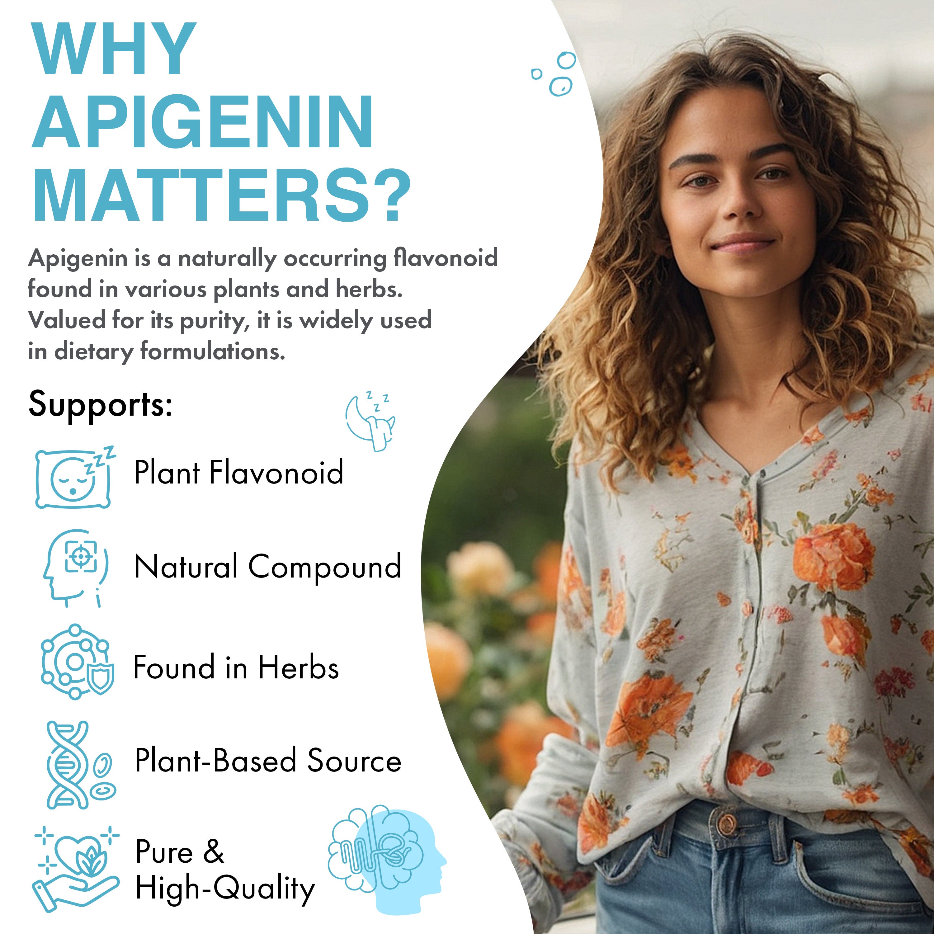🔬 Plant-Based Compound – Apigenin is a naturally occurring plant compound selected for its high quality, making it a valuable addition to a mindful lifestyle.