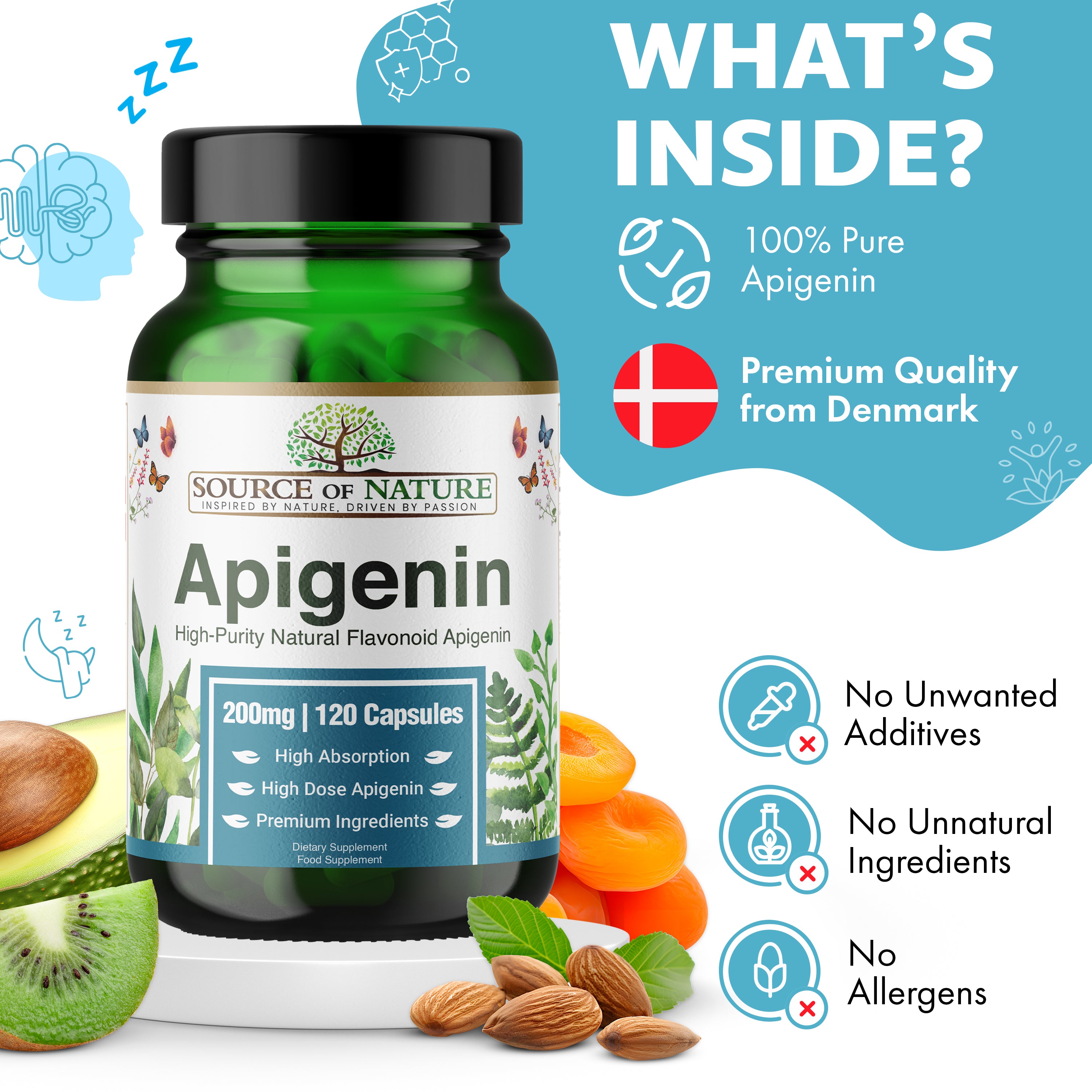 Apigenin is a naturally occurring flavonoid found in various plant-based sources, including herbs, fruits, and vegetables. Carefully selected for quality and purity, this supplement offers a highly concentrated, plant-derived Apigenin formula.