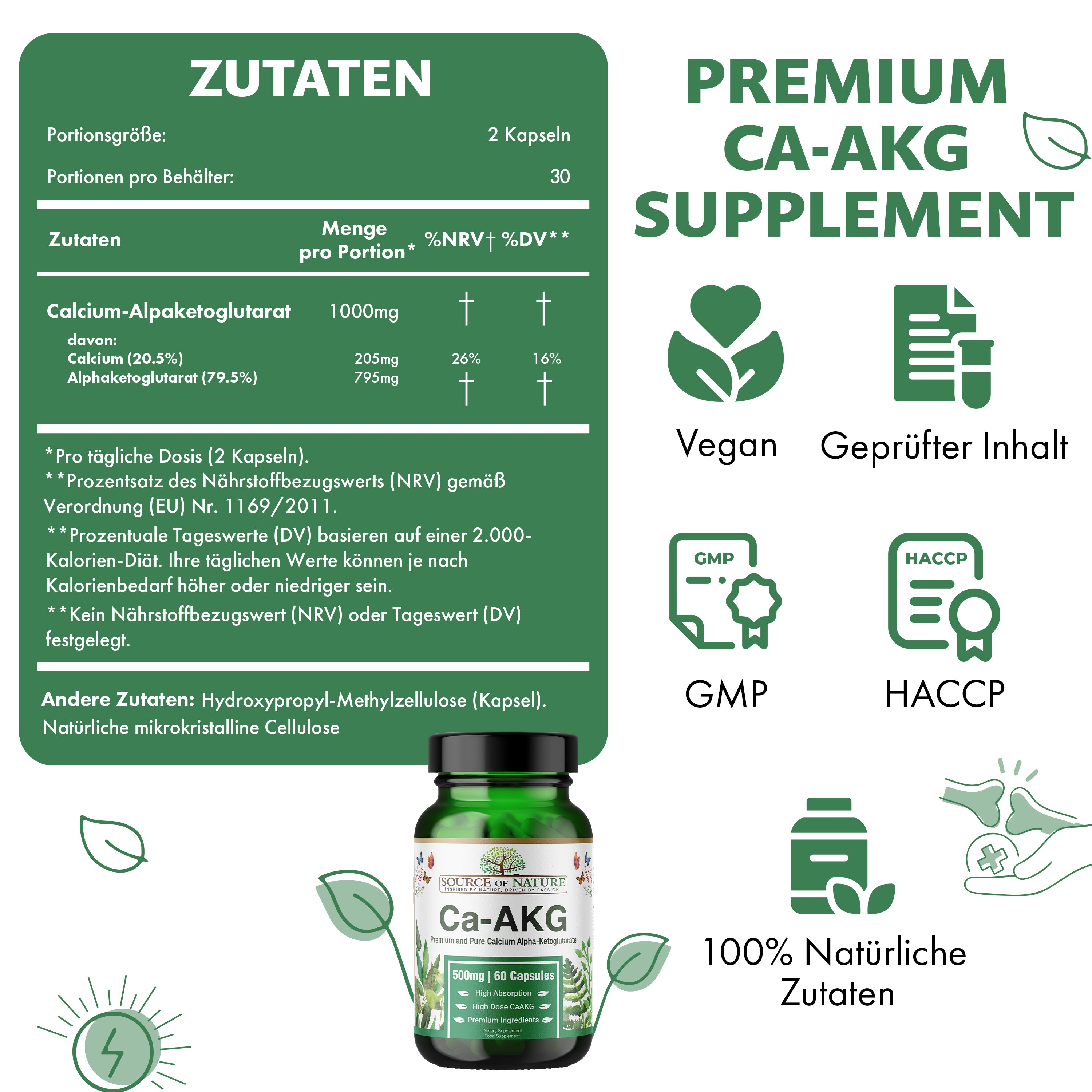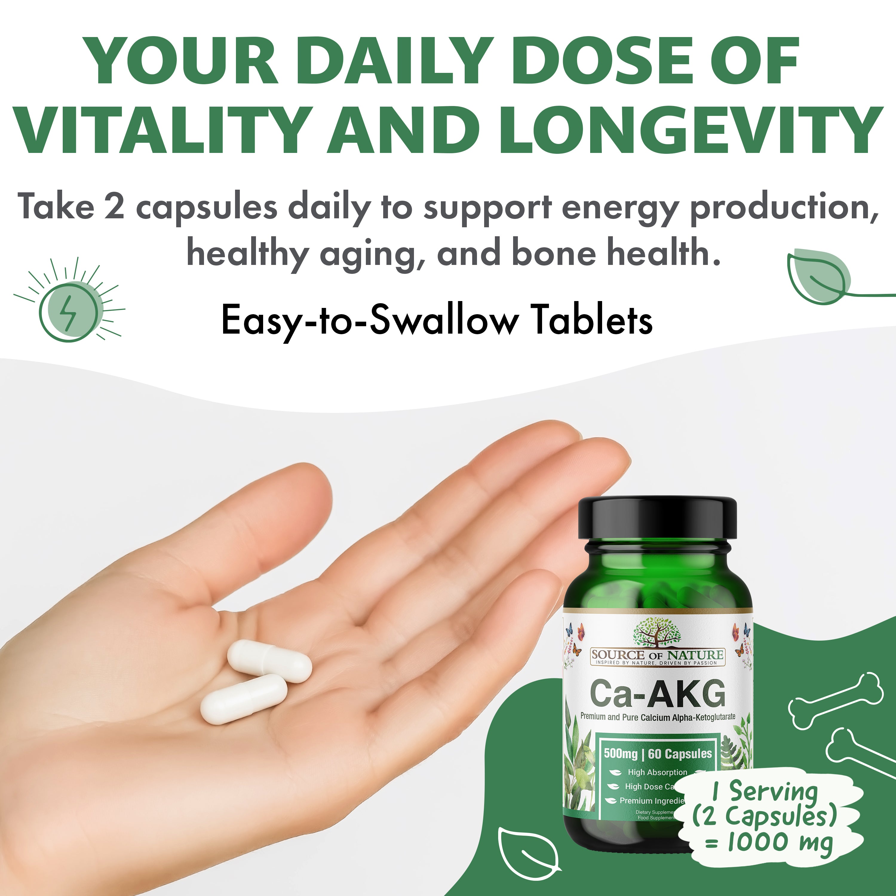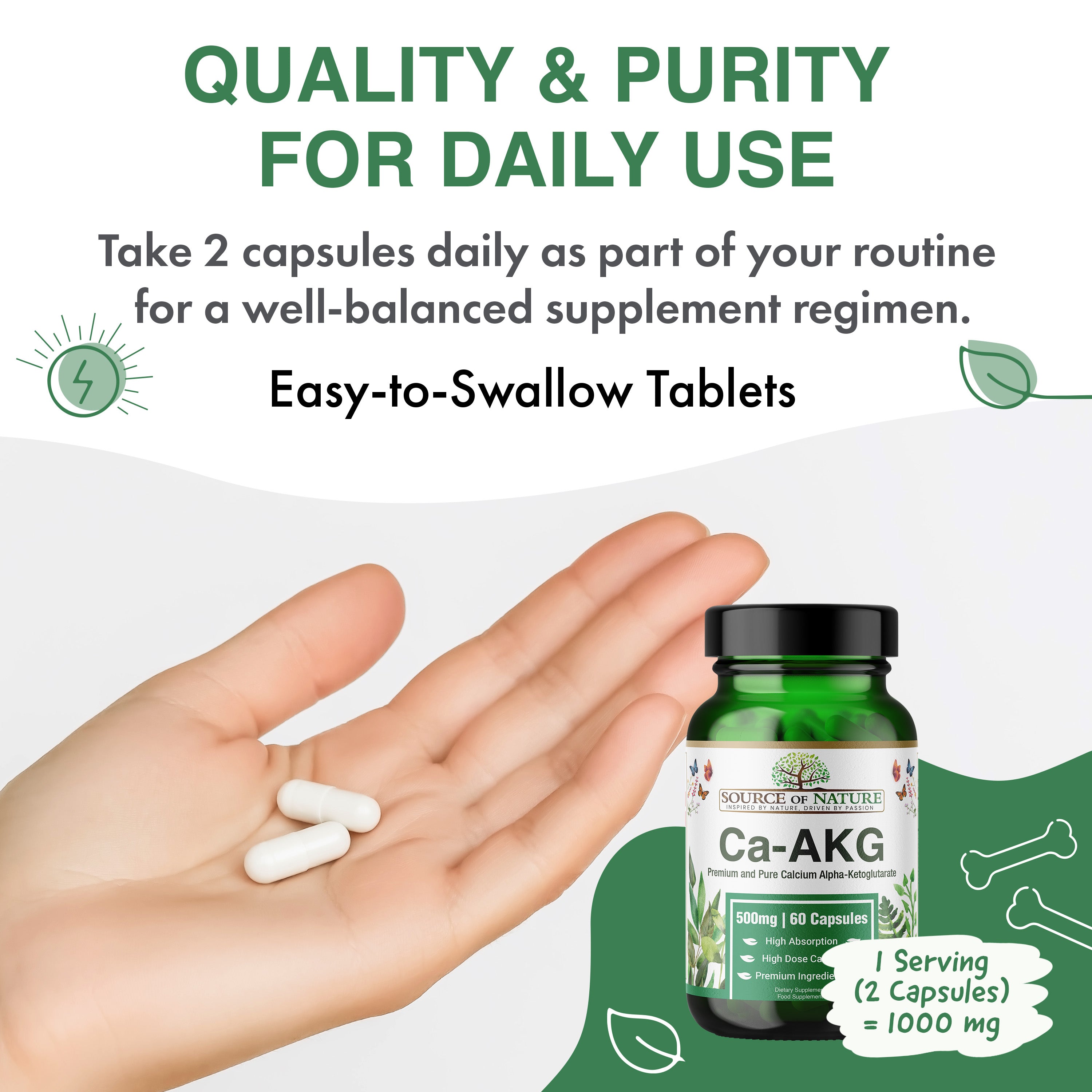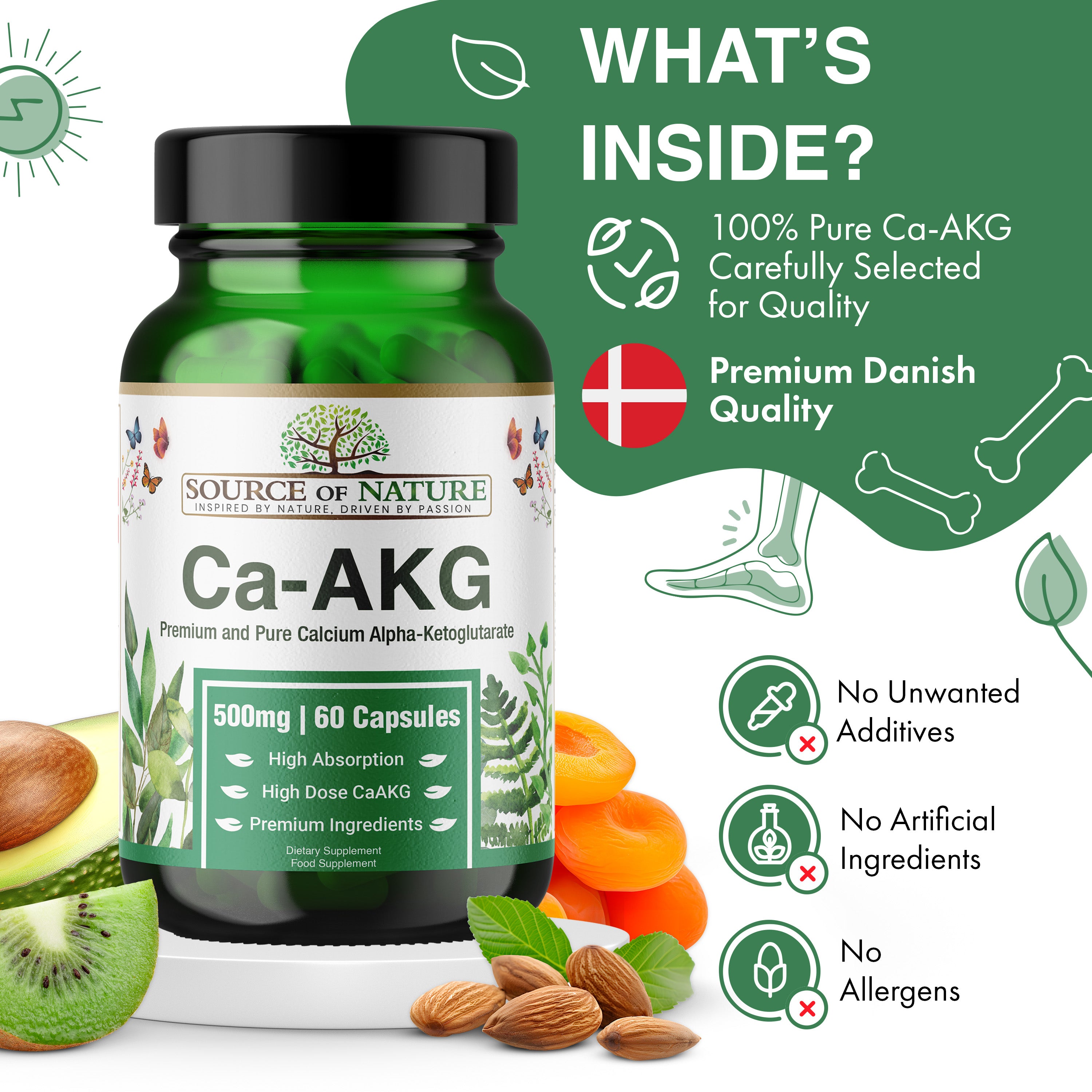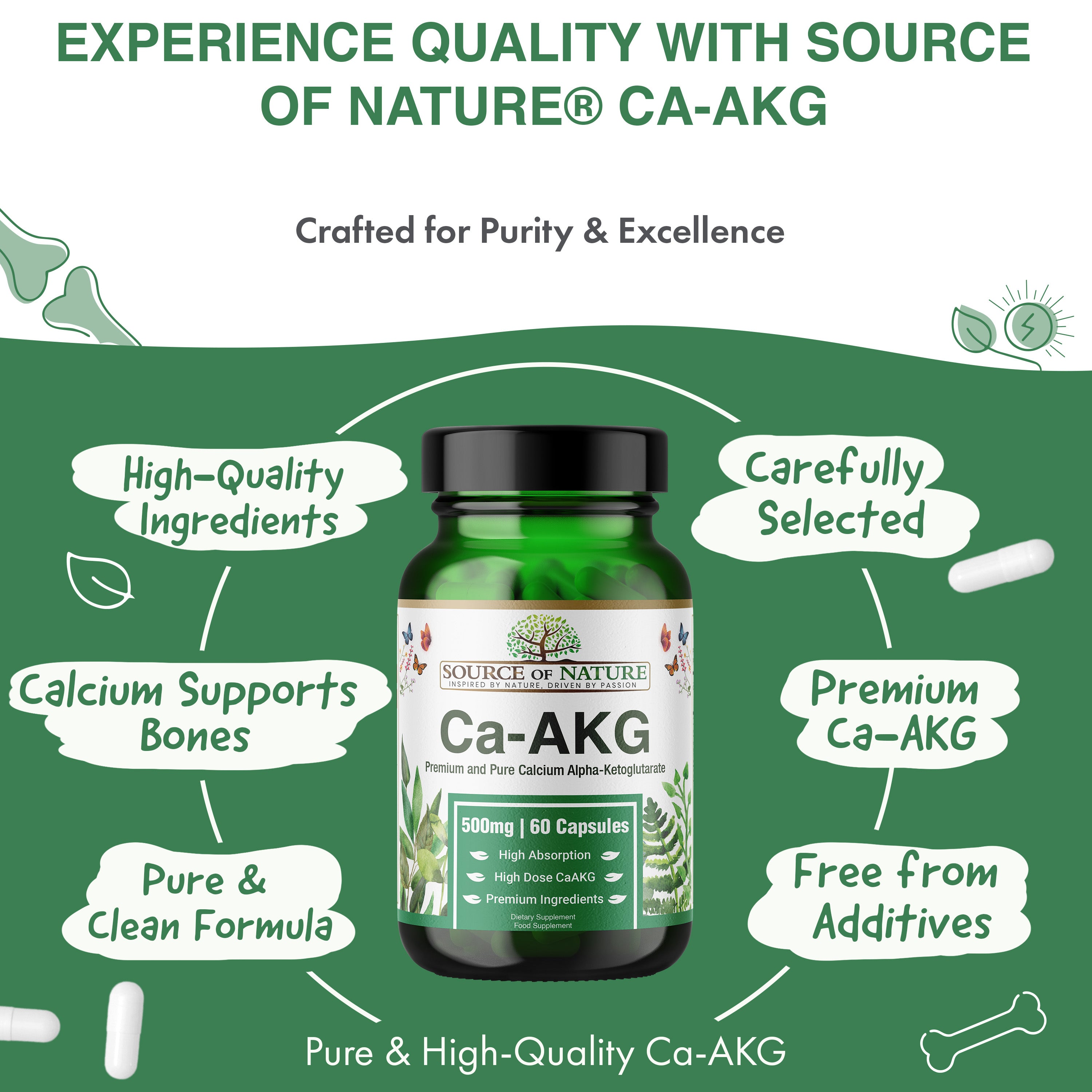 Source of Nature Ca-AKG is a high-purity food supplement formulated with Calcium Alpha-Ketoglutarate (Ca-AKG), also known as Calcium A-Ketoglutarate. Each serving delivers a precisely measured dose, ensuring a consistent addition to your daily wellness routine.
