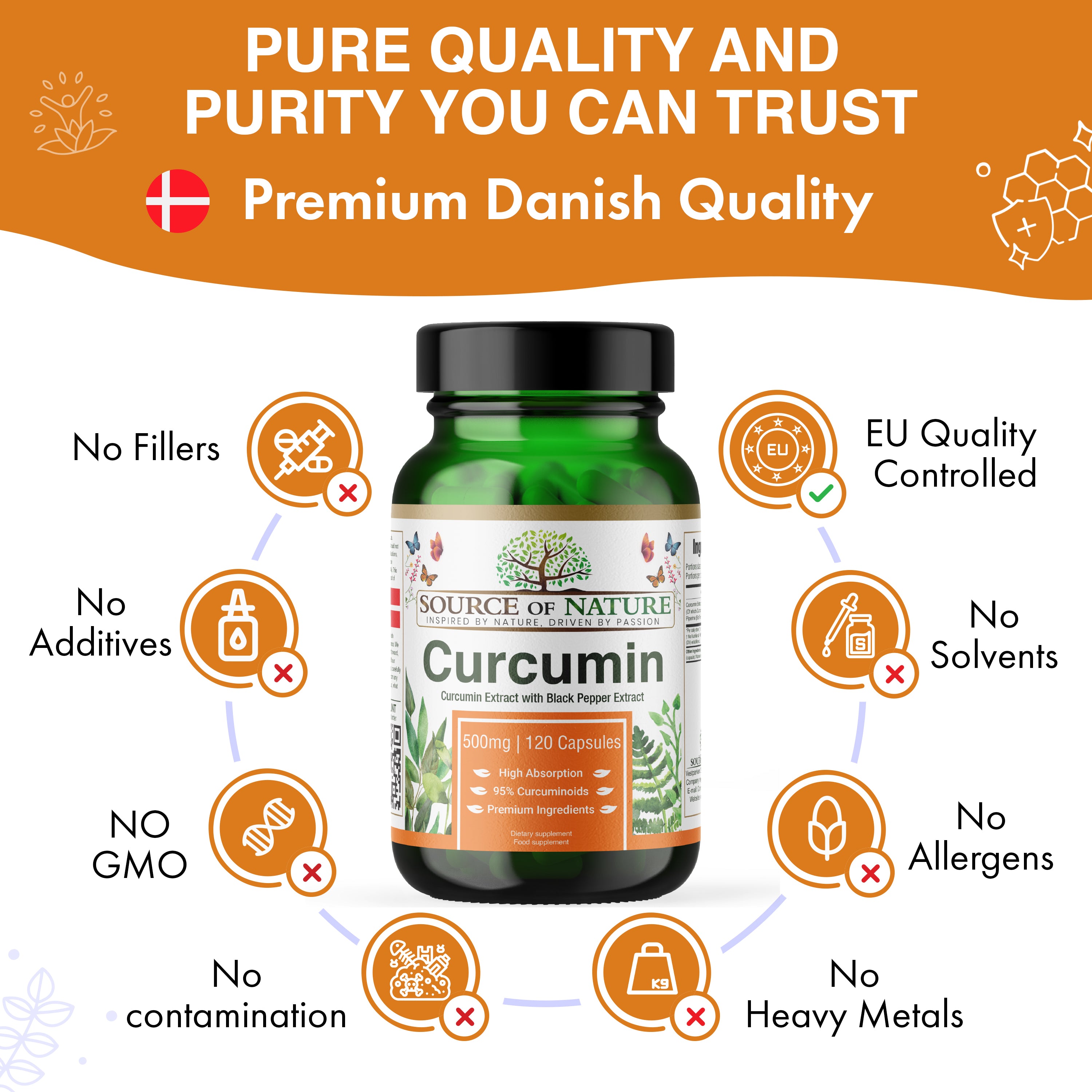 High Purity: Standardized to 95% Curcuminoids with BioPerine® (black pepper extract) included for formulation consistency