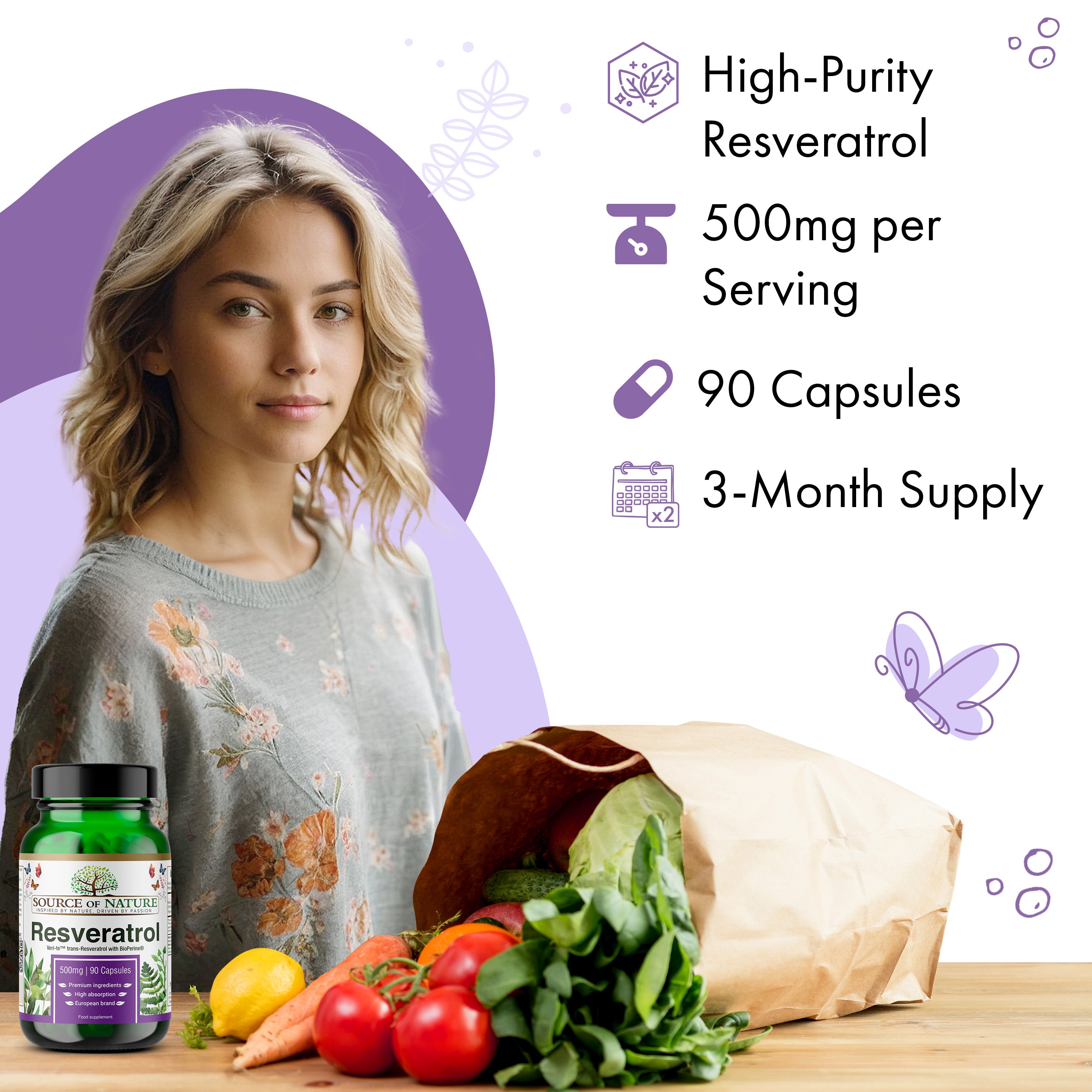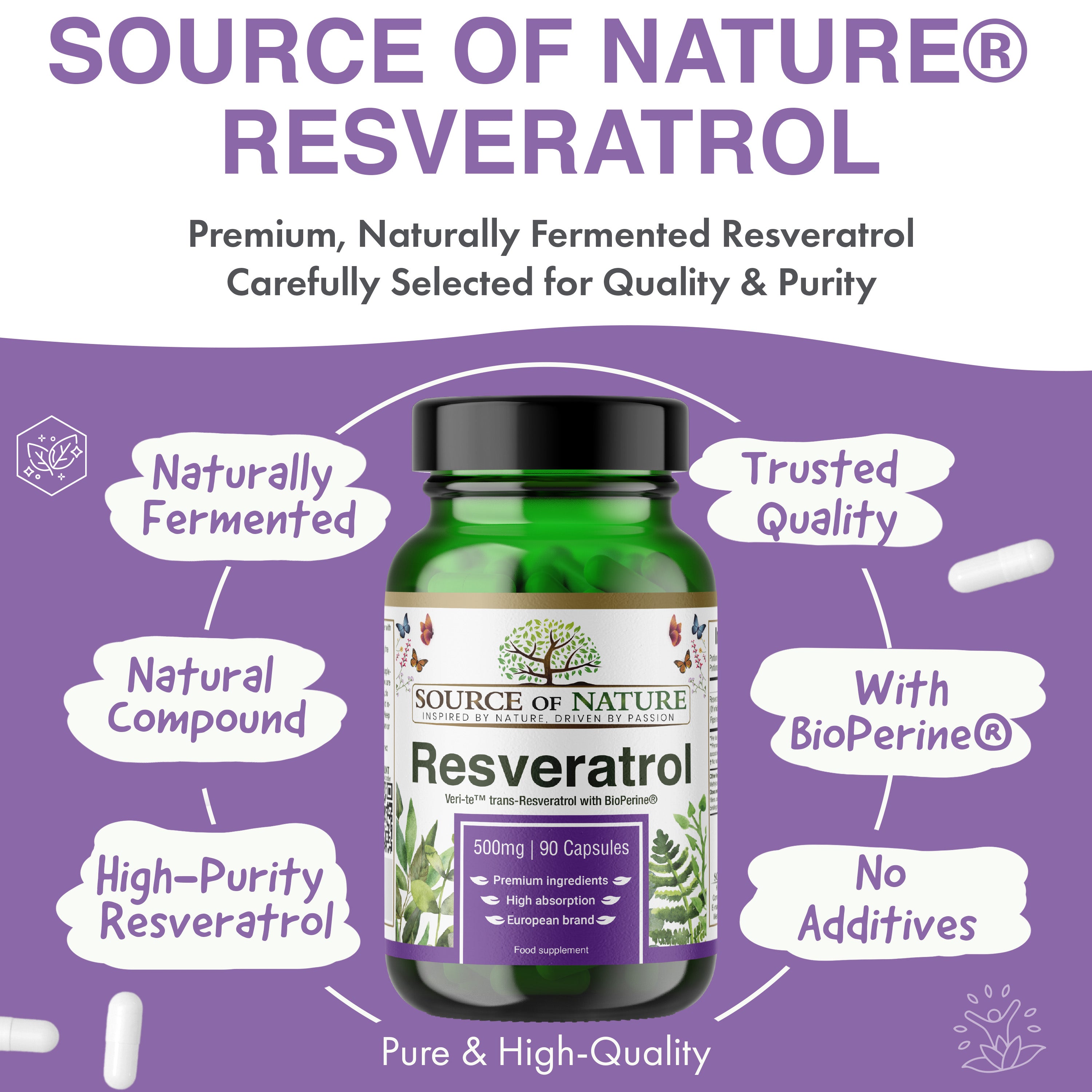 Source of Nature Resveratrolo, un integratore alimentare a base di Trans-resveratrolo da fonti naturali.