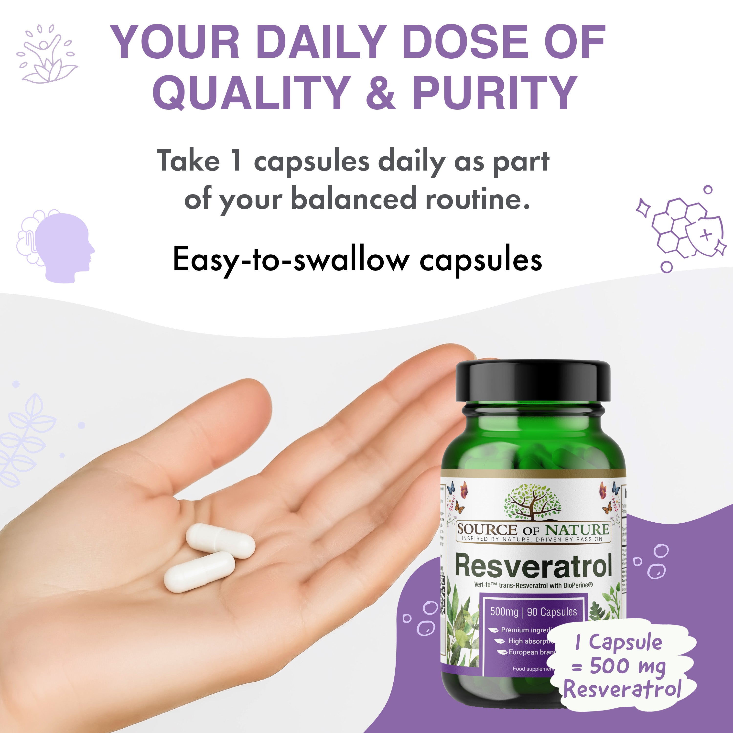 90 capsule da 500 mg ciascuna: Ogni capsula contiene una dose elevata di Trans-Resveratrolo europeo di alta qualità.