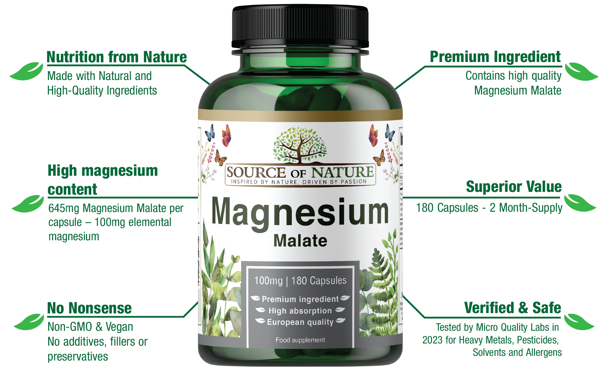 Source of Nature Magnesium – a high-quality food supplement featuring Magnesium Malate from carefully selected sources.
